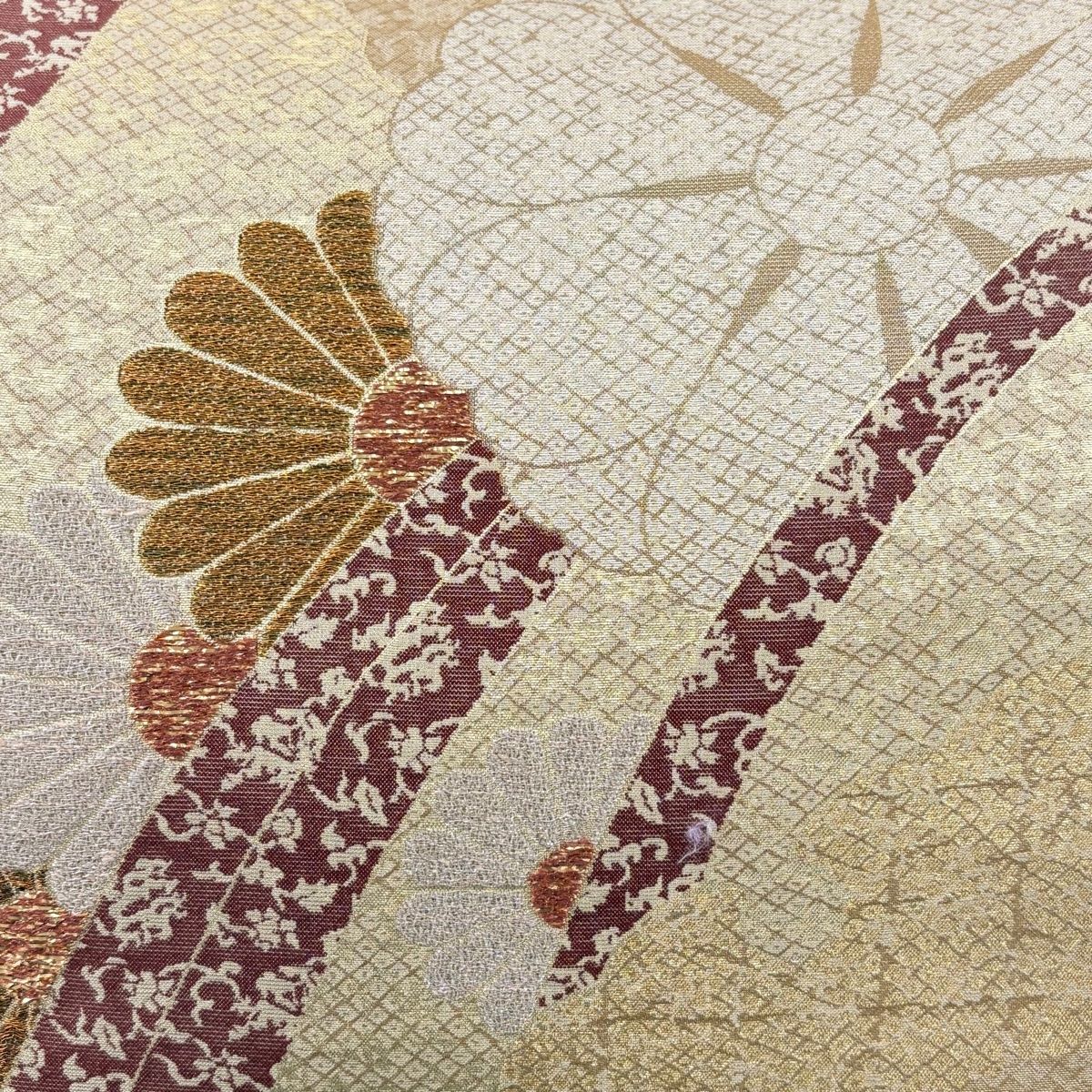 袋帯 秀品 夢小袖 菊 熨斗 金銀糸 箔 金茶 六通 正絹
