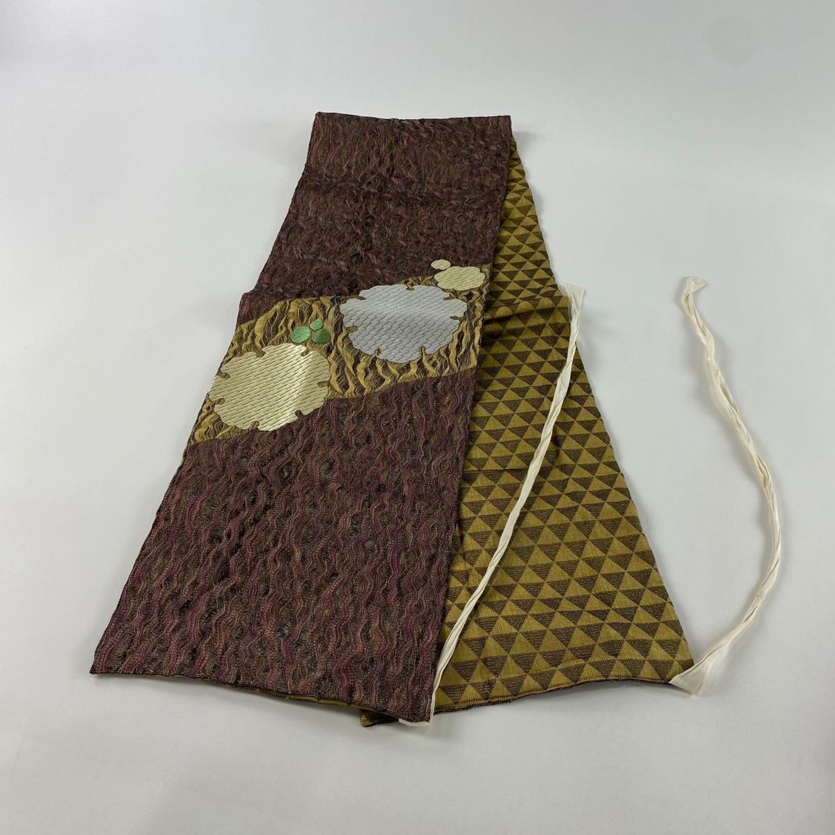 付け帯 作り帯 雪輪 幾何学模様 金銀糸 唐織 赤紫 正絹