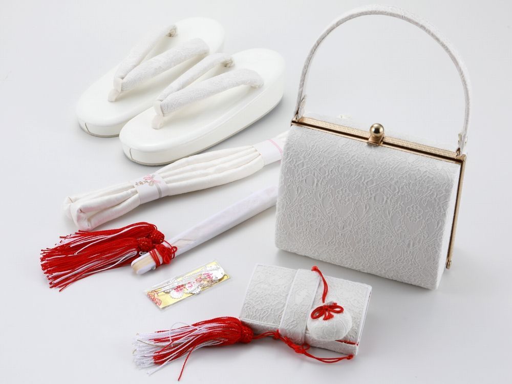 セット内容:バッグ、草履、箱セコ、帯締め(丸グケ)、扇子、カンザシ