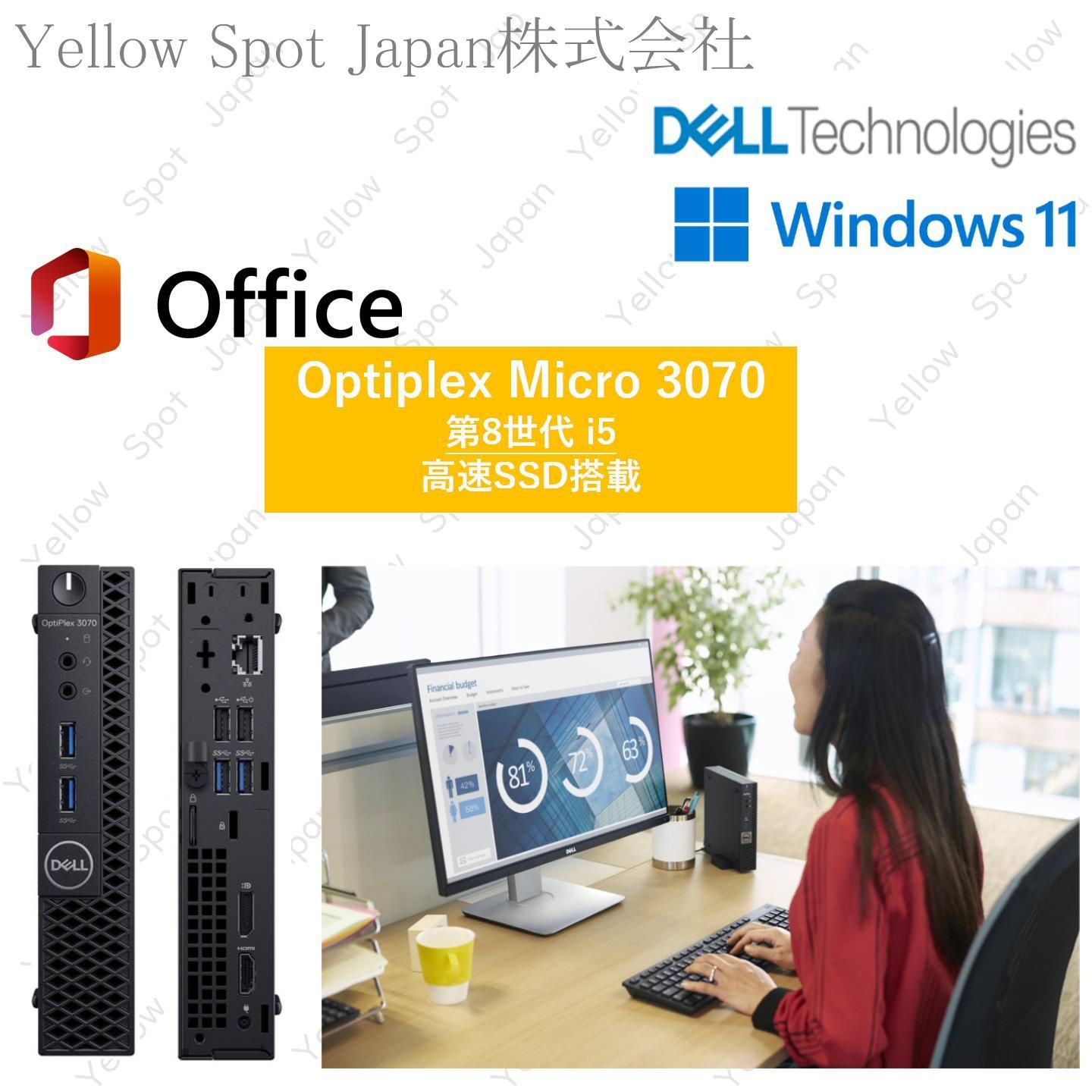 PC DELL 3070 micro 超小型デスクトップ ミニPC パソコン Celeron G 5400 T 第8世代 8 GB SSD 128 Win 11 Pro 搭載 整備済み品
