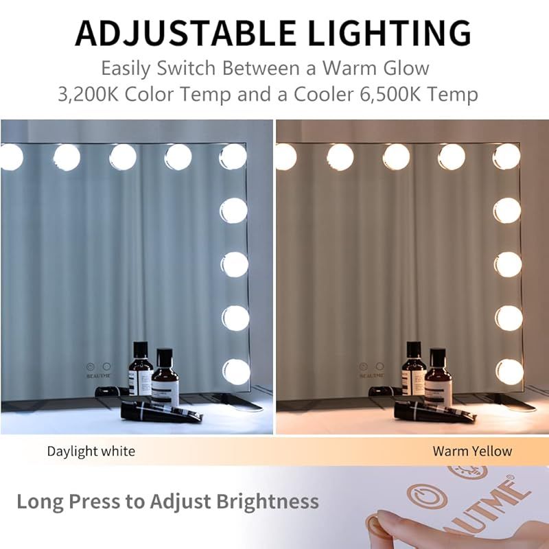 ?【2色ライトモード&明るさ調整】寒色系の白色光と暖色系のオレンジ色光をタッチボタンで変更できるように設計され、違う雰囲気でメイクを行えます。部屋の照明状況により、電球の明るさを好きなように調整できます。色調や明るさを調整し、自然で美しいメイクより簡単に仕上げます。