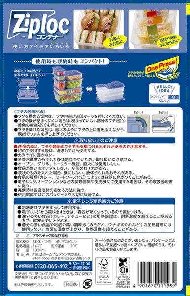 24点セット ジップロック コンテナー 長方形1900ml 入 旭化成ホームプロダクツ 台所用品