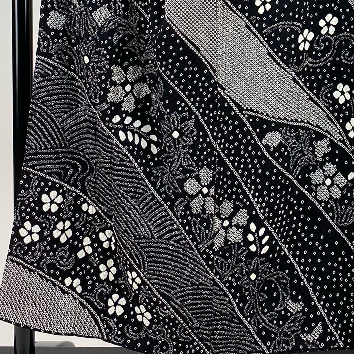 訪問着 身丈155 cm 裄丈66 M 袷 草花 波 総絞り 黒 正絹 秀品