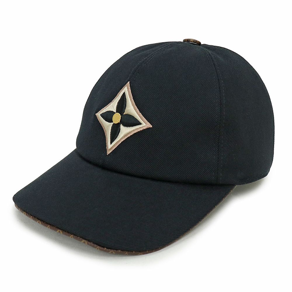 ルイ ヴィトン LV デー キャップ ハット 帽子 刺繍 Mサイズ コットン シルク 牛革 ブラック ブラウン ゴールド金具 M 77806 LOUIS VUITTON