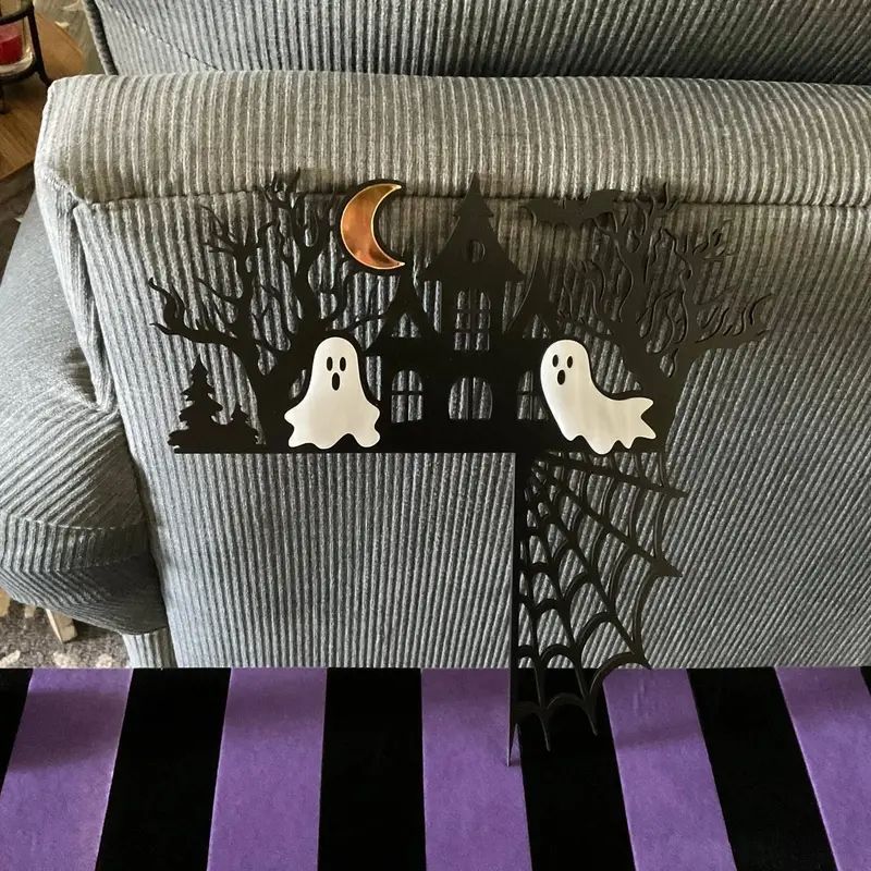 スパイキー3 D ドアコーナー 即 OK クモの巣&幽霊付き ポーチ用完璧なお化け屋敷テーマデコレーション クラシックな木製デザイン yunban 583