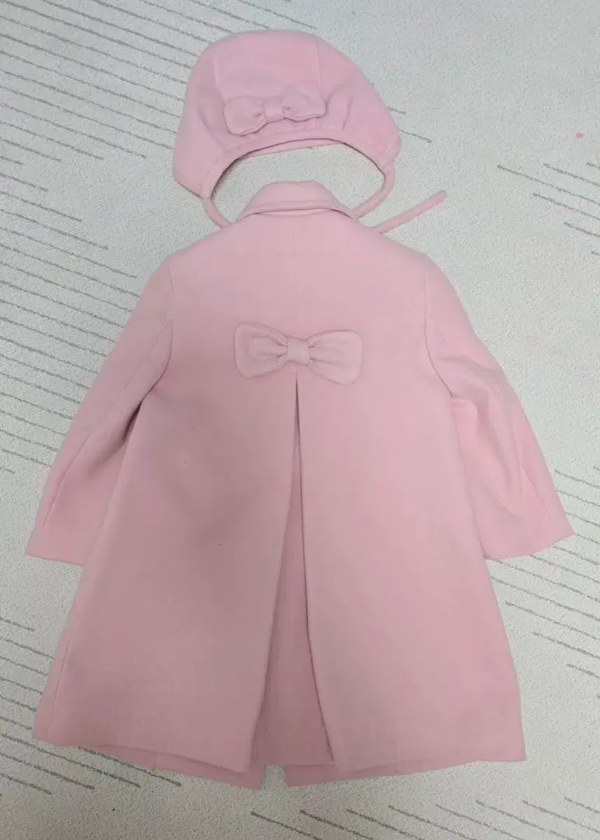 ストロベリーミルクカラーのベビーコートとボンネットのセットです。