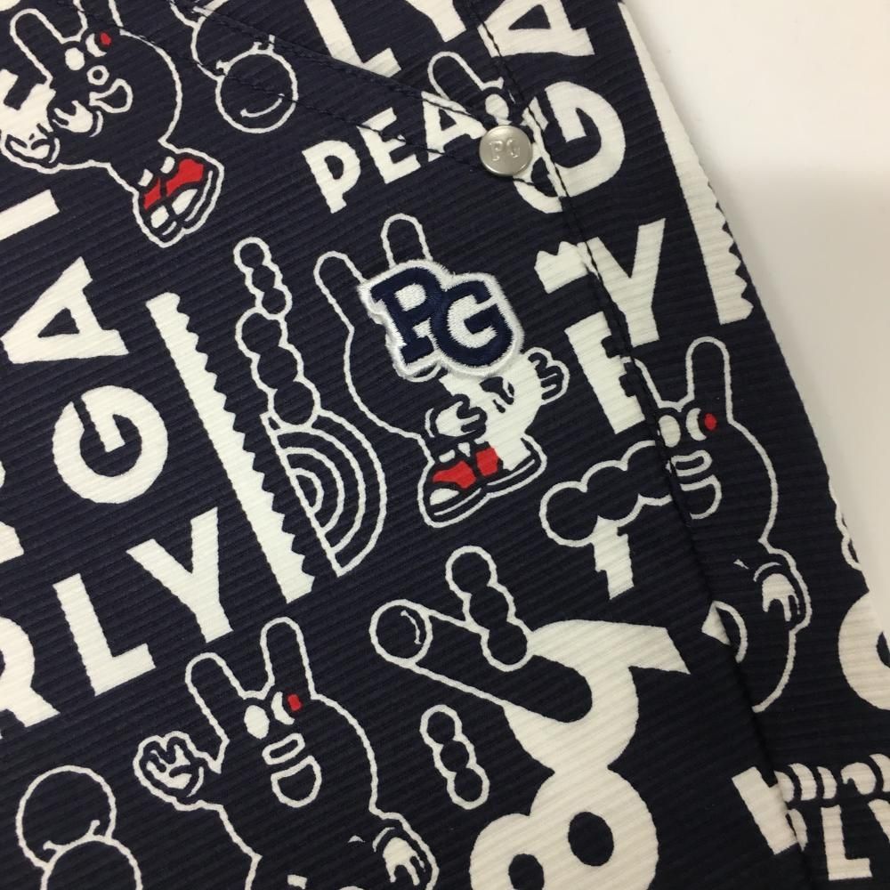 パーリーゲイツ パンツ ネイビー×白 ロゴ総柄 どうしちゃったPG ボーダー織生地 レディース 0 S ゴルフウェア PEARLY GATES
