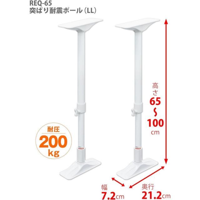 家具転倒防止突っ張り棒 2本組 ホワイト LL セット 高さ65~100 cm REQ 65 防災 地震対策 つっぱり棒
