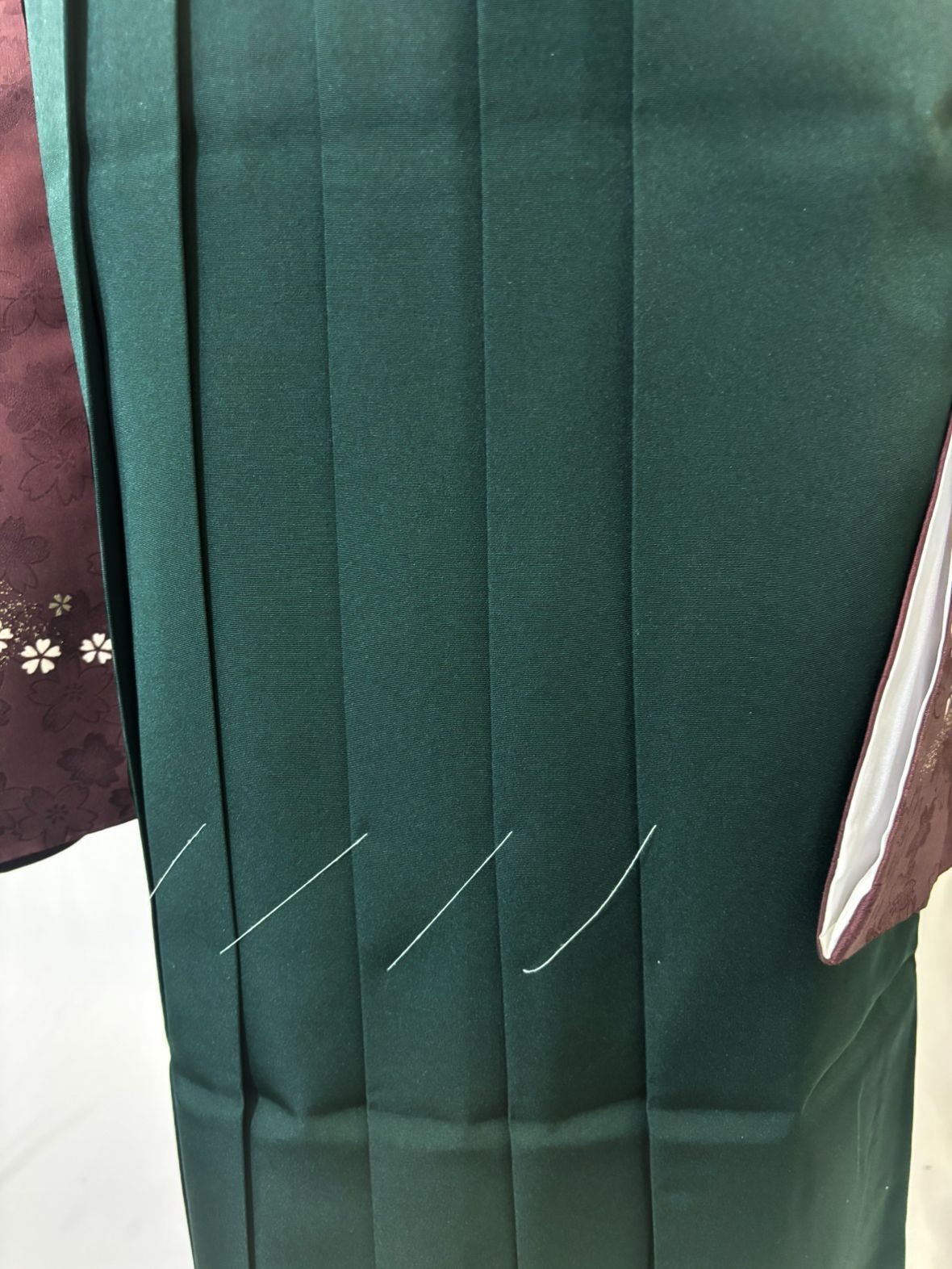 エンジ色と濃い緑の組み合わせは、大正ロマンを感じさせるクラシカルでモダンな雰囲気があり、日本の卒業式で非常に人気の高いコーディネート。