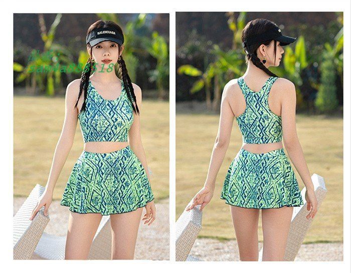 水着 タンキニ レディース 体型カバー M L 3点セット オトナ女子 セパレート ママ水着 グリーン 2 ノンワイヤー ラッシュガード 3 半袖 カバーアップ am 4 a 888518