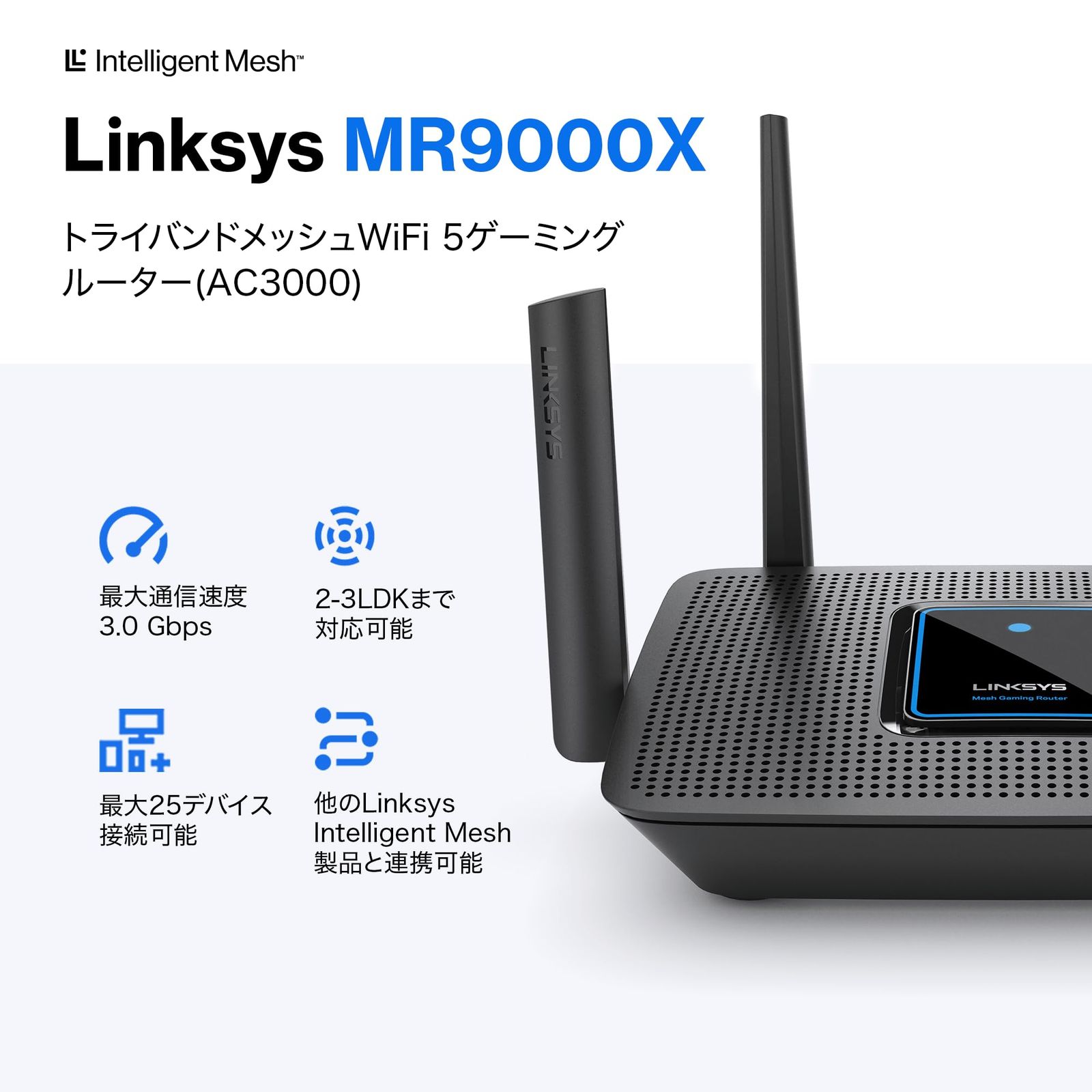 Linksys リンクシス AC 3000 ゲーミングメッシュWi-Fi 5ルーター MR 9000 X-JP 11 1733 867 400 Mbps トライバンド メーカー3年保証 iPhone Android アプリ簡単設定 複数台で メッ