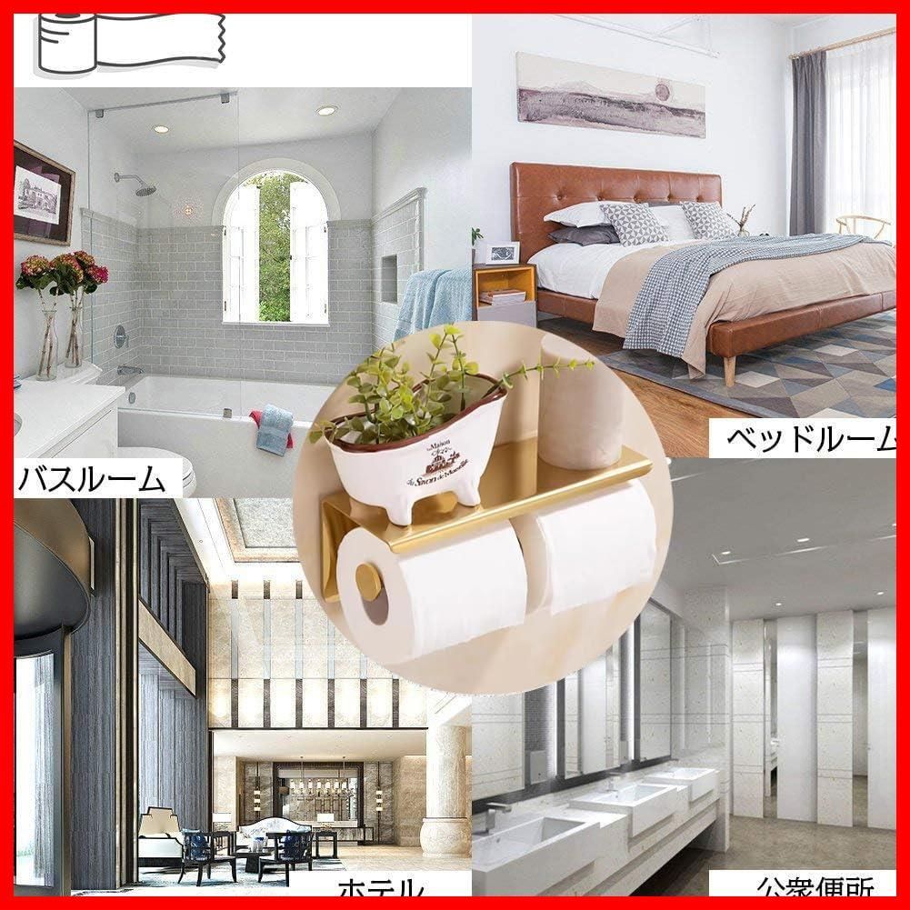 トイレットペーパーホルダー 2連 棚付き 紙巻器 壁取り付けネジ付き ステンレス製 小物置き バスルーム&キッチン用 簡単設置 (ゴールド - トイレットペーパーホルダー 2連)