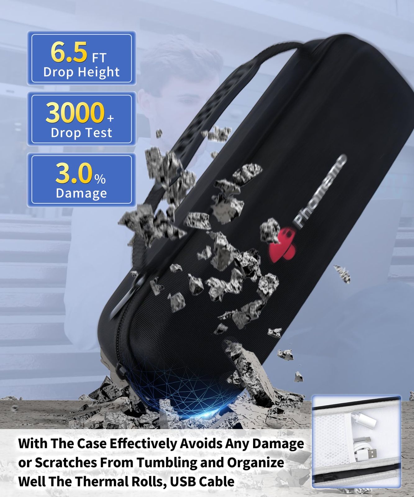 スマホ対応 PC対応 サーマルプリンター 携帯プリンター 業務用 家庭用 旅行用 学習用 小型 プリンター A 4感熱ロール紙収納ボックス同梱 216 mm 210 110 80 53 mm幅広い対応 ブラック モバイルプリンター M 832 Phome