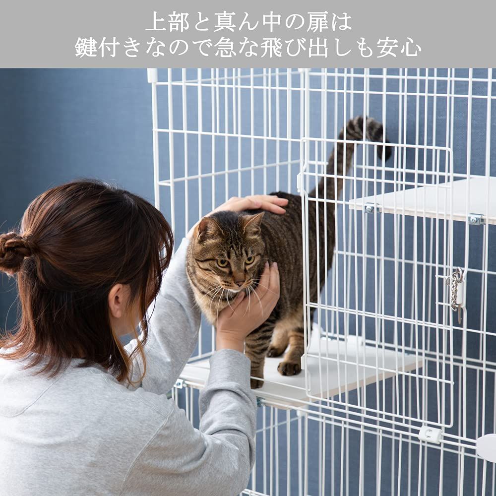 アイリスオーヤマ(IRIS OHYAMA) 猫 ケージ 3段 スリムキャットケージ ホワイト 多頭飼い 高さ200×幅74.5×奥行47cm
