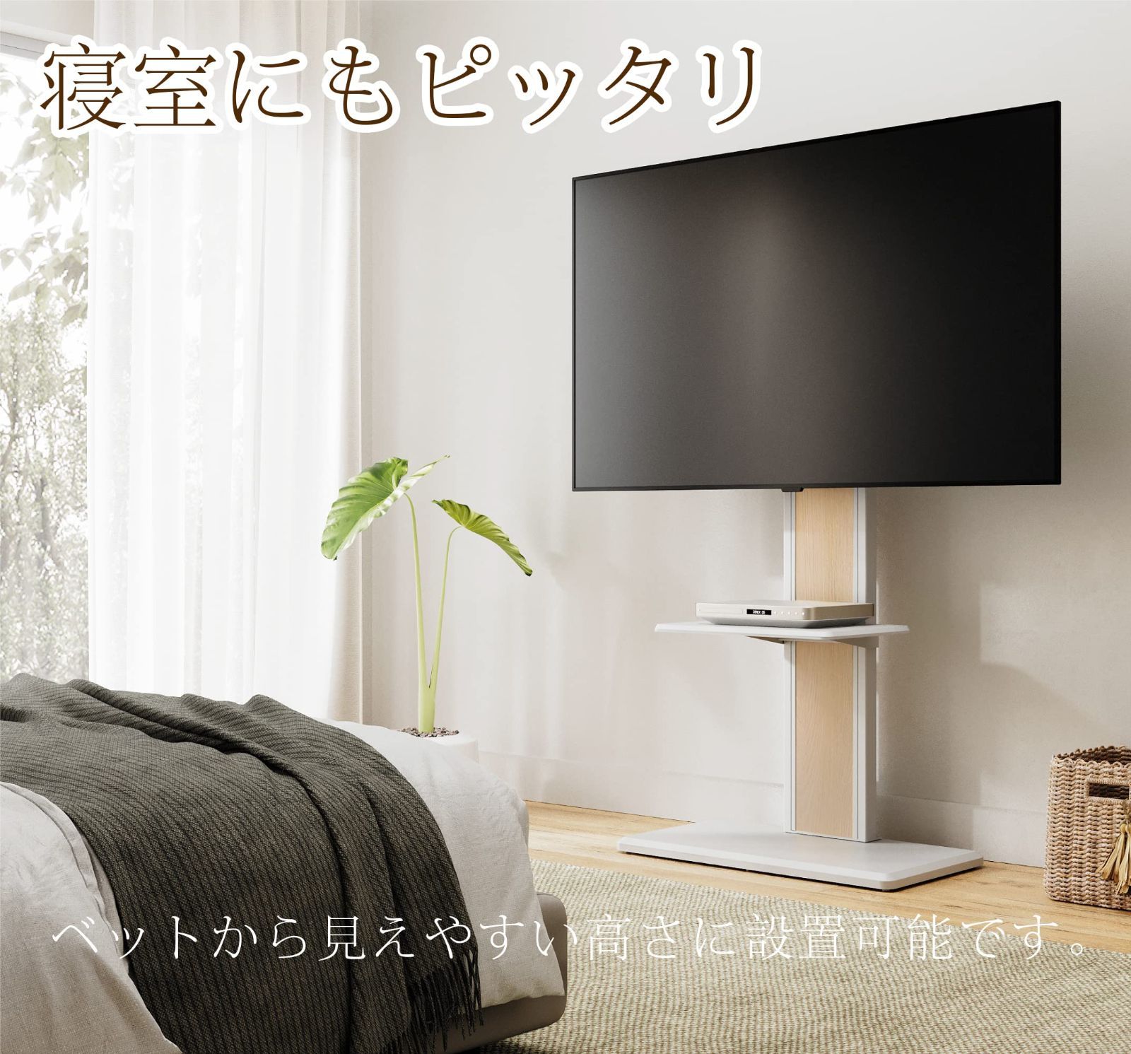 【コーナー置き&壁寄せ】お部屋のコーナーに設置可能で、スペースを有効に活用し、狭いところにピッタリです。首振り部品を装着する場合、左右に各20°調節できます。首振り部品を装着しない場合、テレビ背面から壁までの距離は11.2cmしかありません。まるで壁掛けのように見えます。