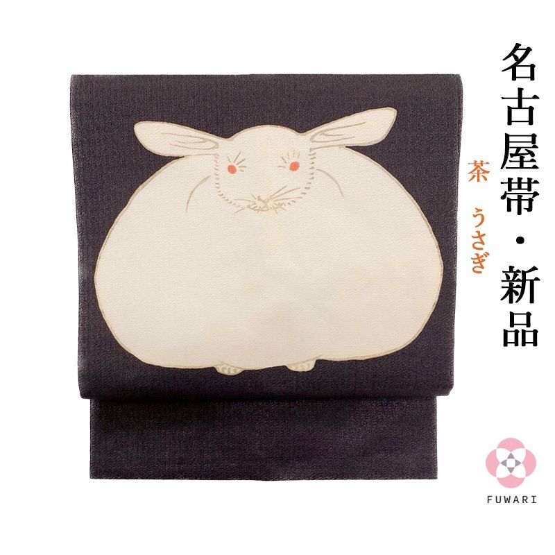 お仕立て上がり 名古屋帯 茶 日本画 藪長水 うさぎ柄 obx 34