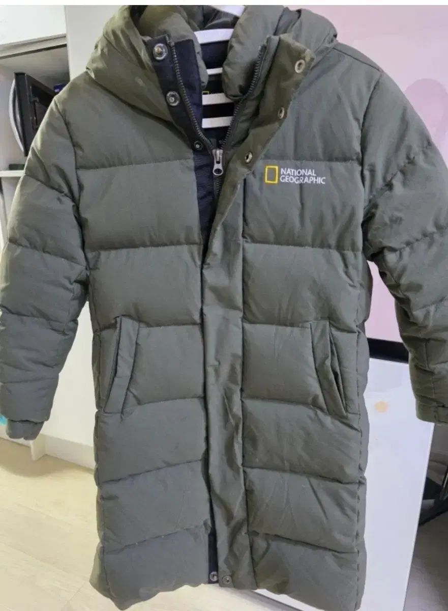 カーキ色ナショナルジオグラフィック ロングダウンジャケットです。ヒップを覆う丈なので暖かく着ることができます。特別なコメントがなければ、すぐにお支払いをお願いいたします。