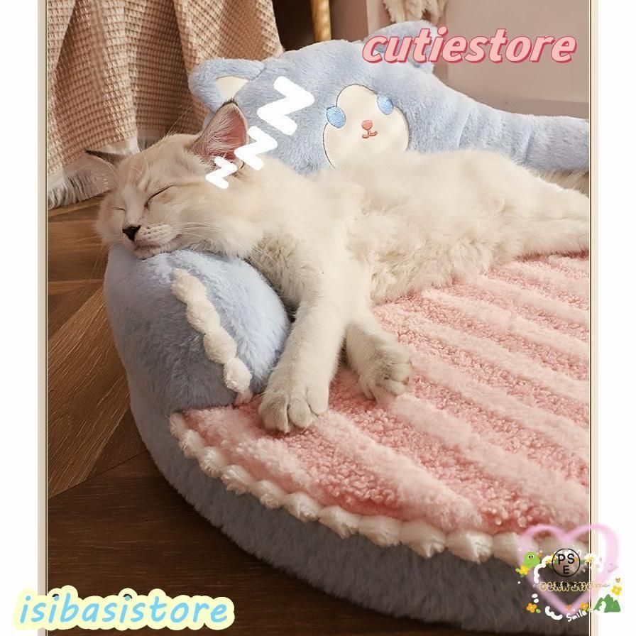 ペット用ベッド 猫 犬 犬猫兼用 ペット クマ型 ネコ型 丸型 ラウンド 小型犬 かわいい もこもこ ペット用品 茶色 青 ストライプ