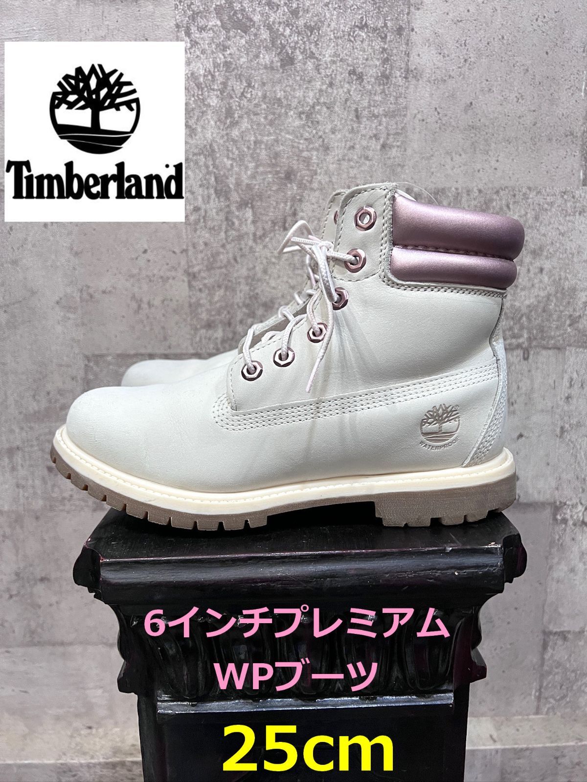 美品 ティンバーランド 6インチ プレミアム WP ブーツ 25cm 白/パールピンク レディース Timberland A4340 A2AD4