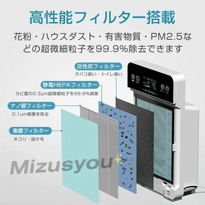UV除菌 脱臭 ウイルス即 OK花粉対策 静音 コンパクトタバコ HEPA H 13フィルター 自動清浄モード ペット用 レボイ