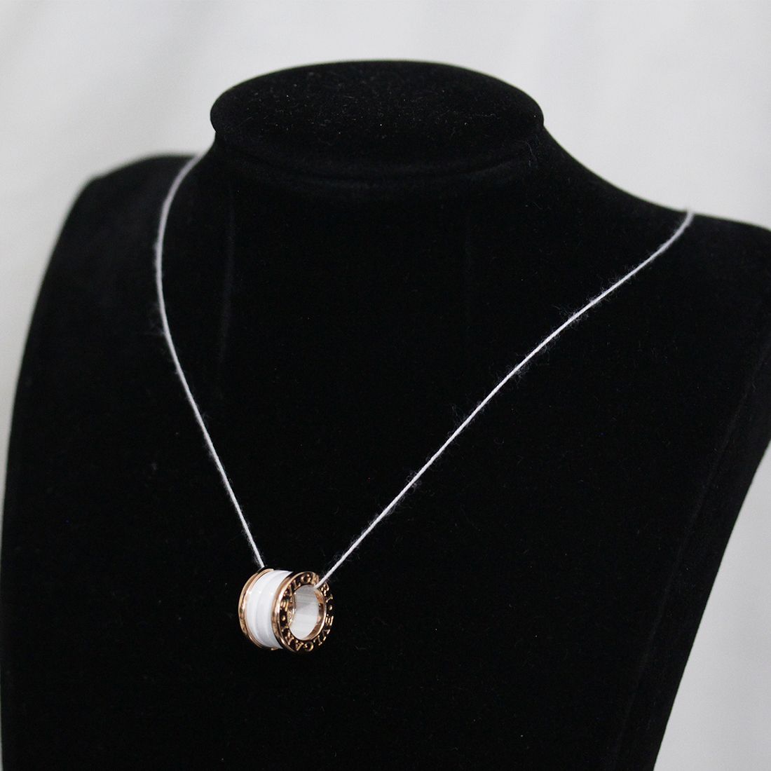 ■ ブルガリの白セラミックとピンクゴールドのペンダントトップです。かわいらしい温かみのあるピンクゴールドが胸元に彩りを与えます。ぜひご検討下さい。