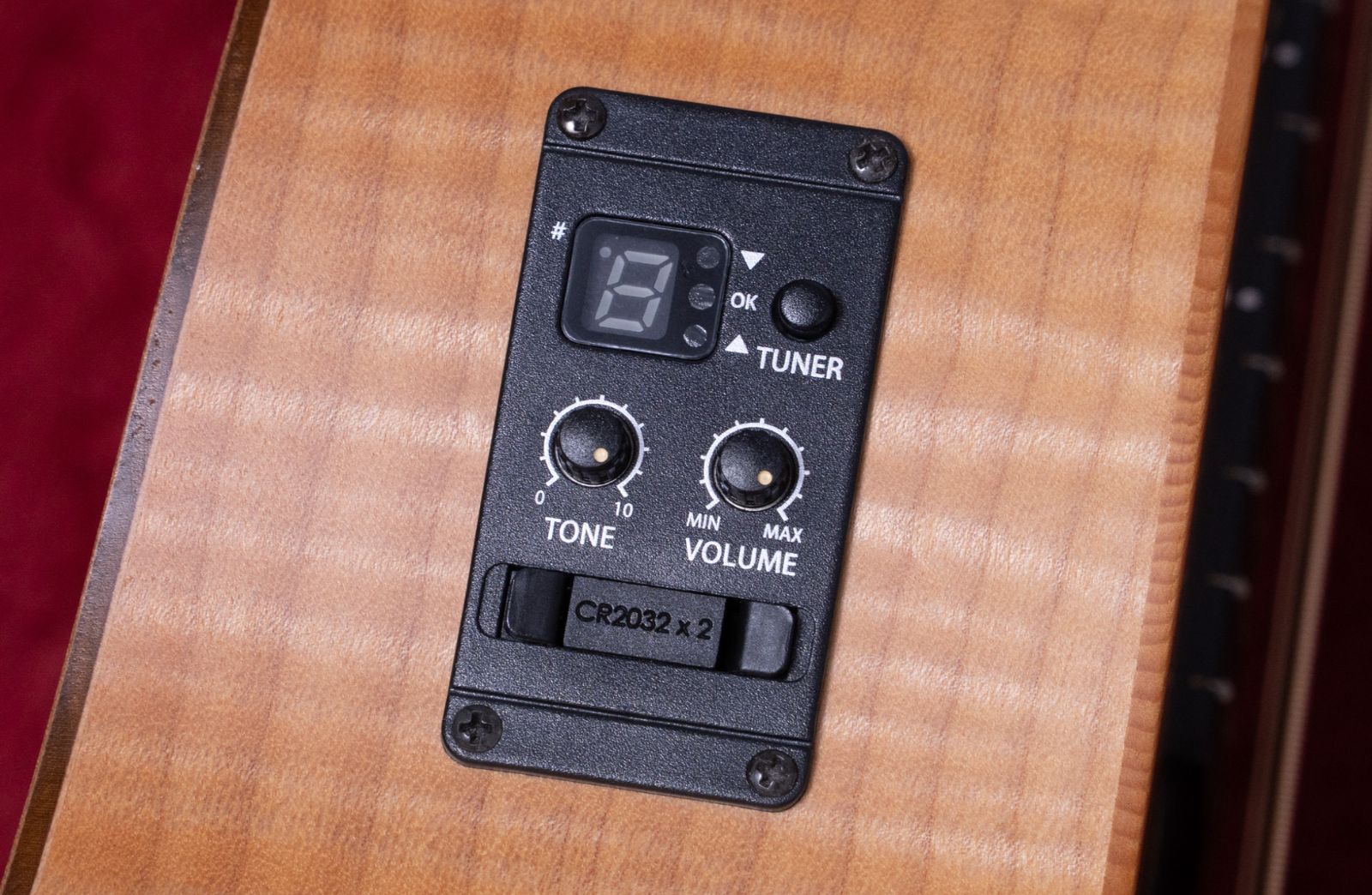 また、ピックアップとプリアンプを備えておりシールドケーブルによってラインで出力することも可能です。