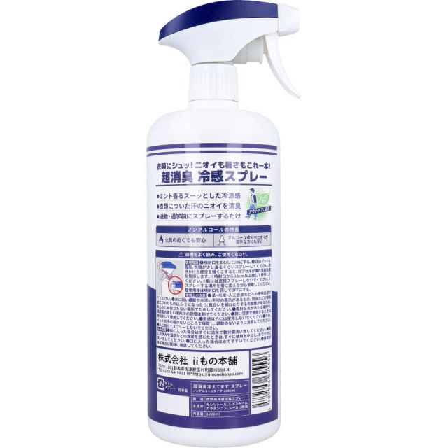 超消臭冷えてますスプレーノンアルコールタイプ1000mL汗のニオイを超消臭衣類にシュッ!ニオイも暑さもこれ一本!