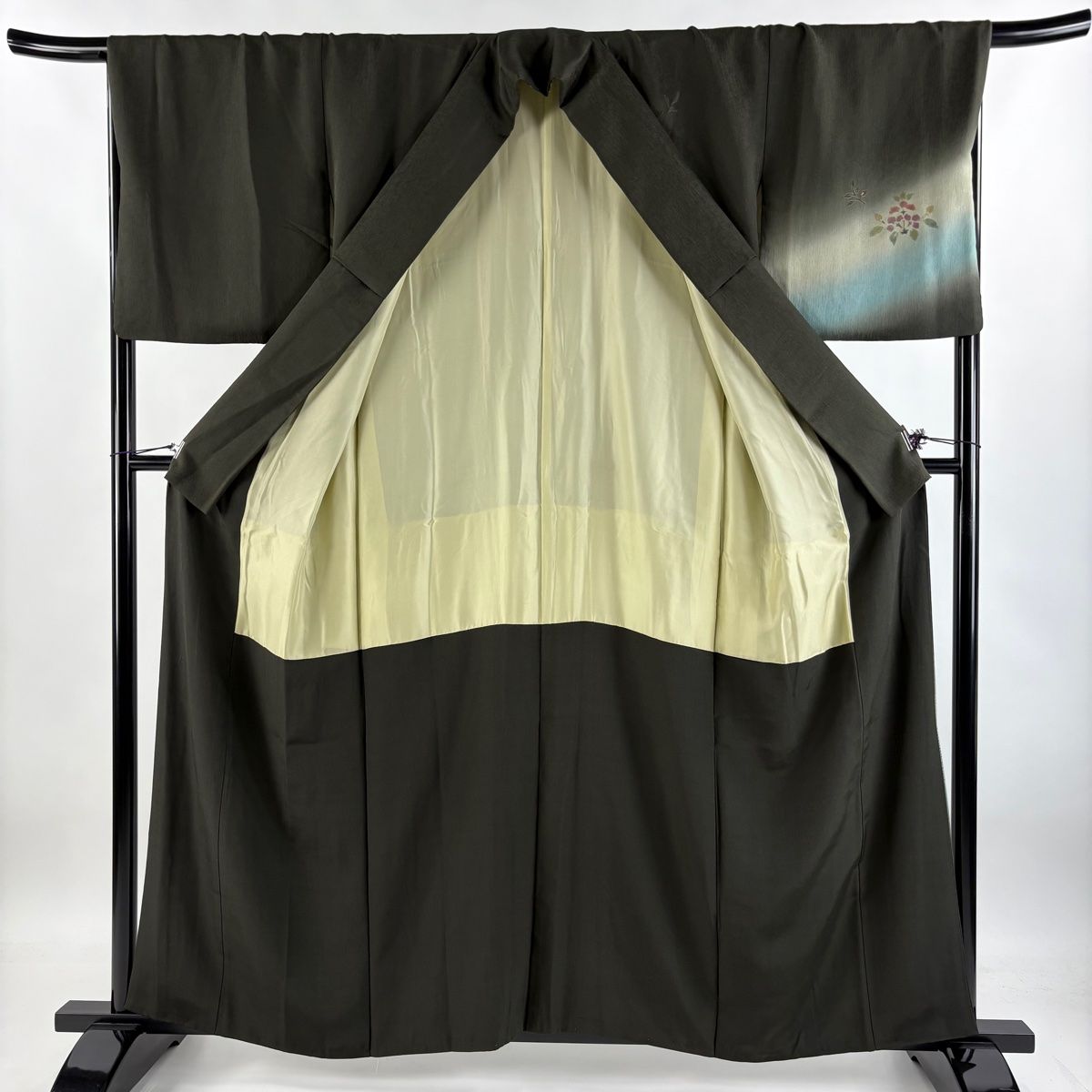 付下げ 身丈158.5 cm 裄丈69 L 袷 鳳凰 草花 刺繍 金糸 深緑 正絹