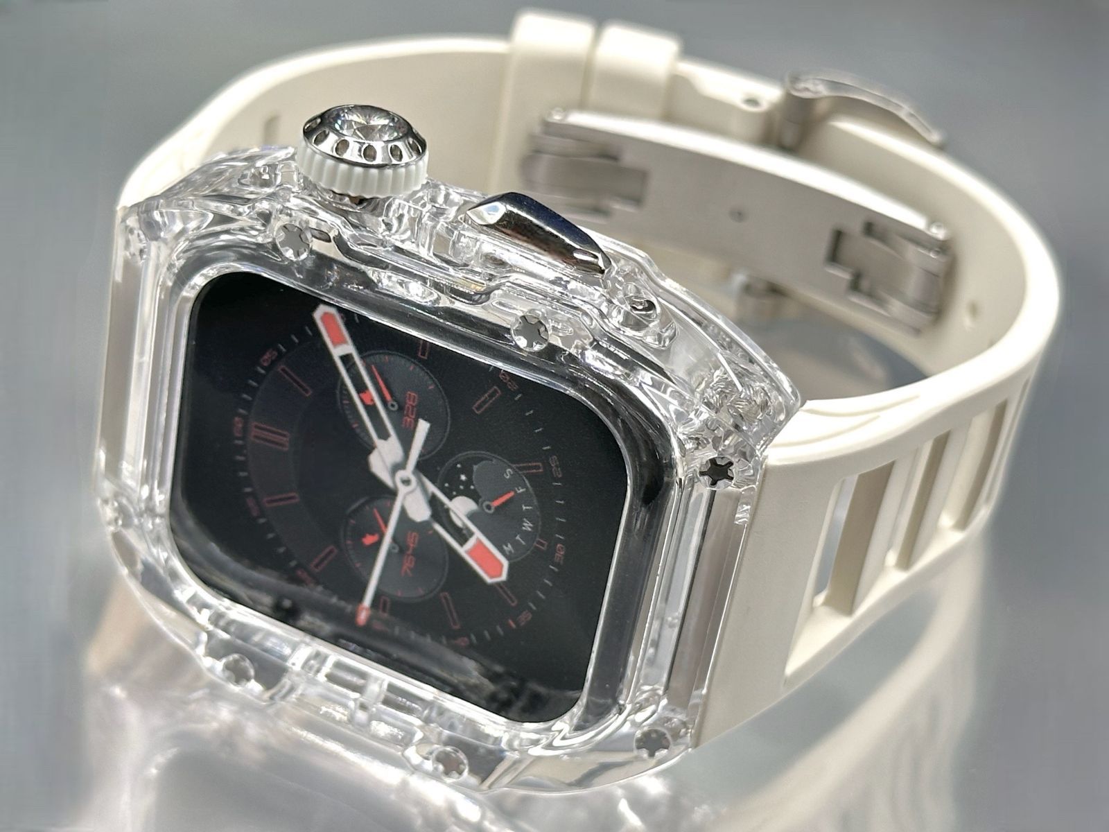 クリアシルバー アップルウォッチバンド ラバーベルト カバー Apple Watch クリア ケース 44 mm 45 4 5 6 7 8 se スポーツ メンズ レディース