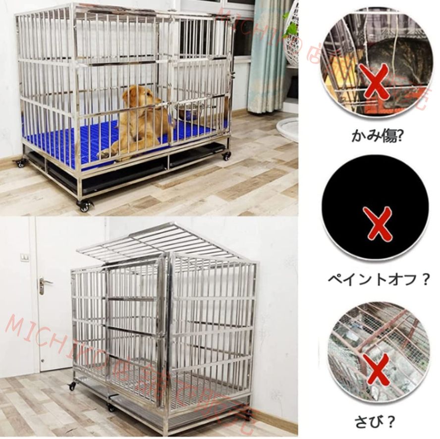 犬用ケージ あらゆる種類のペットの犬と猫に適したステンレス製の犬用ケージ 大型犬と犬用ケージ ペット かご キャリーバック 厚 大型 小型 中型犬 クレート おしゃれ 鉄製 ステンレス鋼