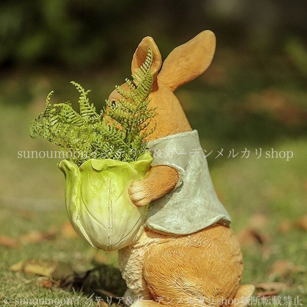 こちらは、可愛らしいうさぎをモチーフにした樹脂製のプランターです。リアルな造形と柔らかな色合いは、庭やバルコニーに幸せな雰囲気をもたらしてくれます。うさぎの愛らしい表情と、愛らしいポーズが、日々の暮らしに温かみを与える存在となるでしょう。