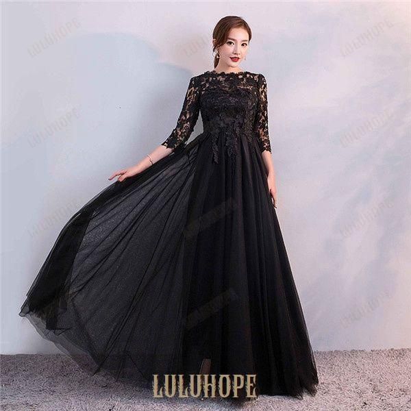 ロングドレス 演奏会 パーティードレス ブラック 黒 袖あり レディース 結婚式 ワンピース お呼ばれ ピアノ 発表会 大人 大きいサイズ xs FuE 9843