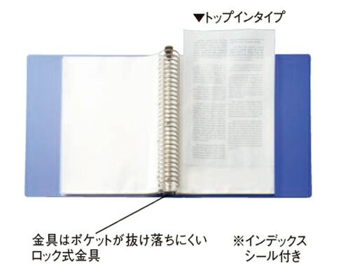 材 質 :表紙・ポケット/ポリプロピレン、綴じ具/スチール