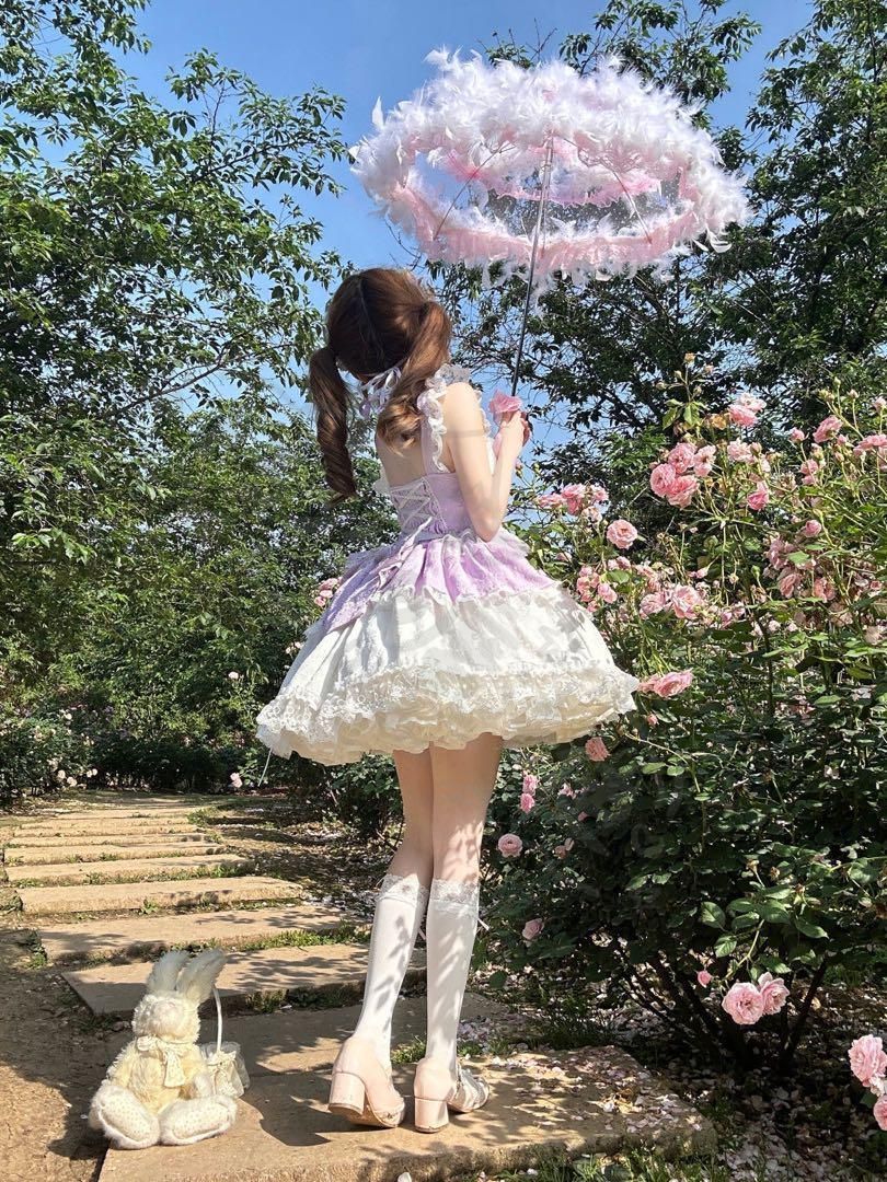 胸元には編みこみとレースの装飾が施された、レース刺繍のあるLolitaワンピース。特別なデザインで、かわいい森ガールをテーマとして、ゴスロリの雰囲気を出ています。