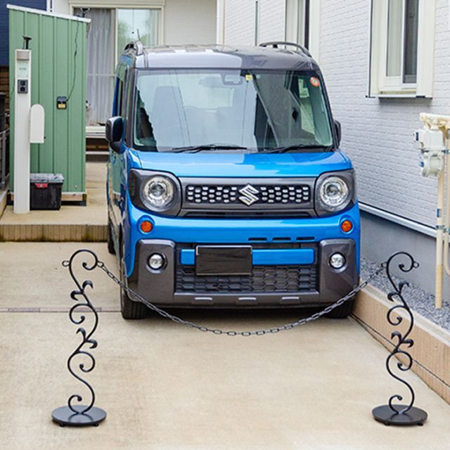 駐車場ポールに別売りの専用チェーンをひっかけるだけですぐに使えるのも魅力です。