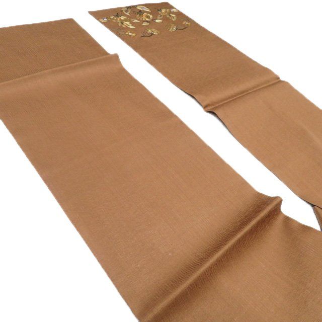 特選 袋帯 リサイクル 正絹 カジュアル 仕立て上がり お太鼓柄 刺繍 花模様 反端付き 香染色 多色 きもの北條 A 1285-13