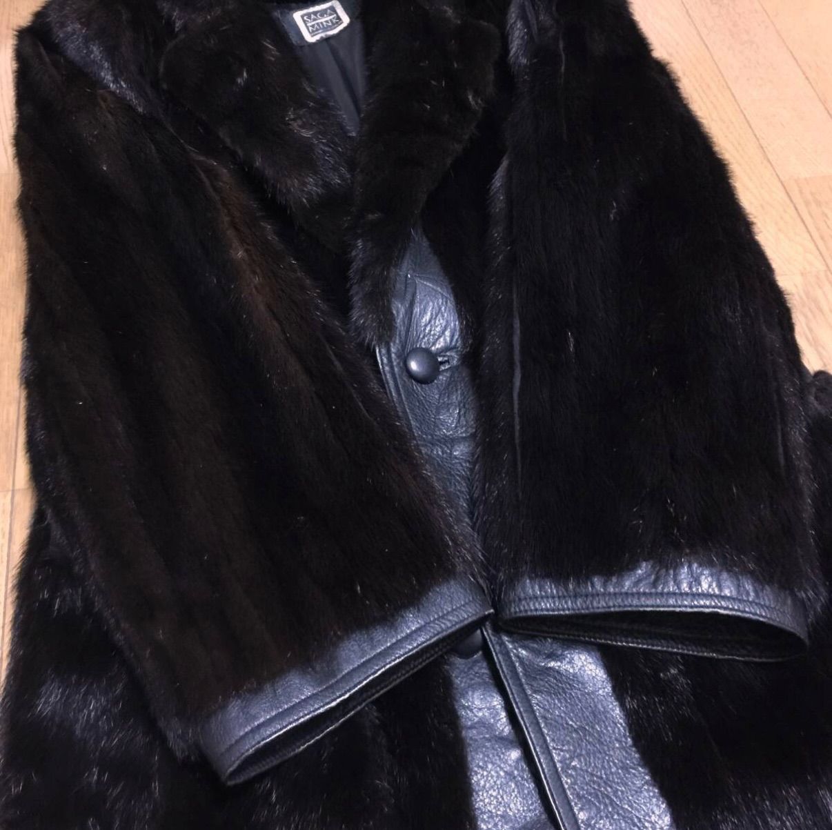 SAGA MINK サガミンク チェスターコート ミンク レザー切り替え サイズL