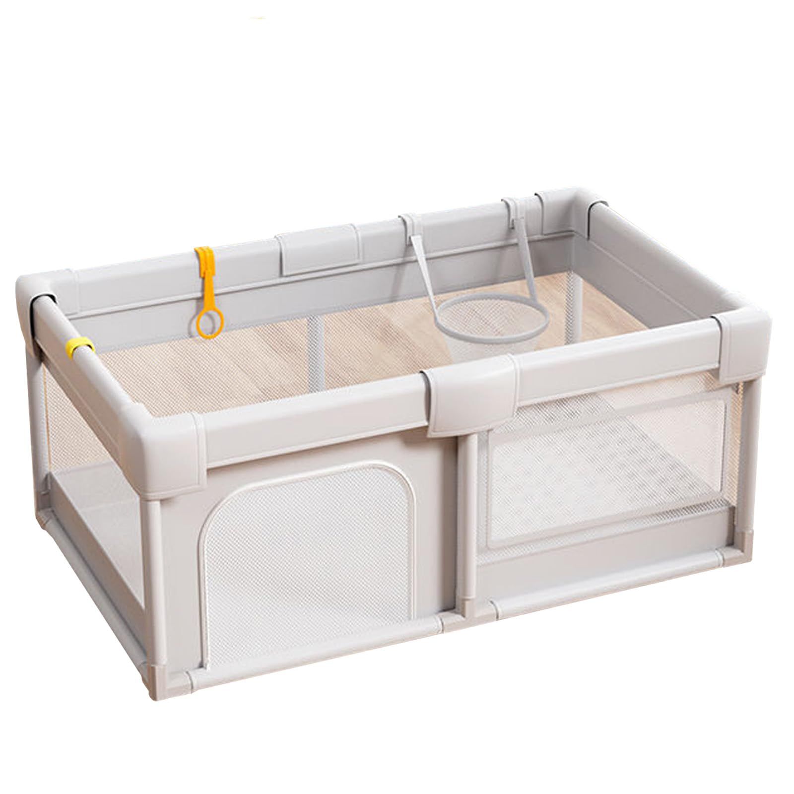 Yangweng ベビーサークル ベビーフェンス 滑り止め吸盤付き バスケット付き ドアロック付き 大型 外側ロック 扉付き 吊り輪付き カバー付 室内外対応 ファスナー開閉扉 キッズランド ベビーゲート プレイヤード キッズパーテーション 子供