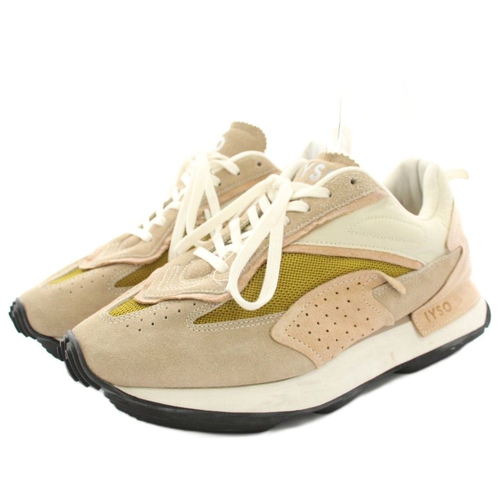 イソ IYSO スニーカー シューズ スエード メッシュ US 9 27 cm ベージュ ピンク HN