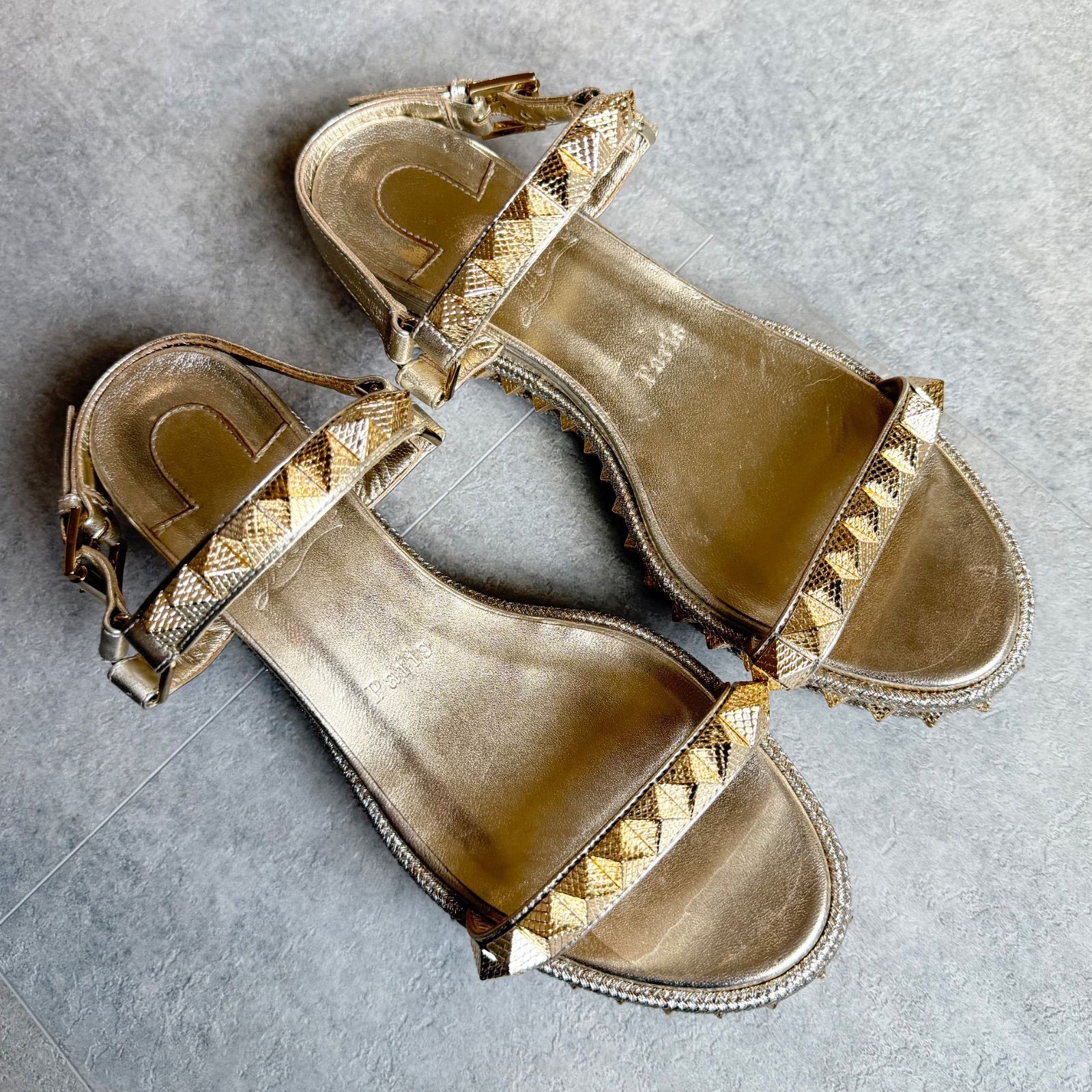 ルブタン Christian Louboutin カタクロウ ウェッジソール サンダル スタッズ ストラップサンダル ゴールド シルバー 37 24 cm