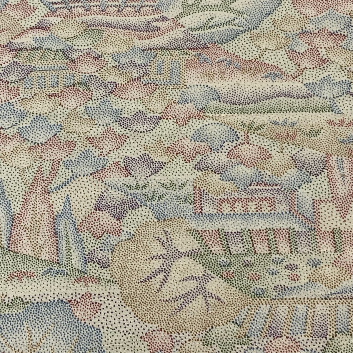 反物 秀品 小紋 紬地 風景 建物 ベージュ 正絹