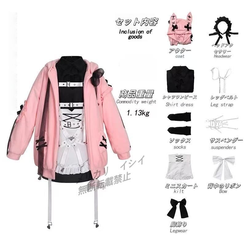 にじさんじ Vtuber 魔界ノりりむ コスプレ衣装 フルセット 上着 ワンピース うさ耳フード付き 外套 サイズ S〜3 XL ピンク