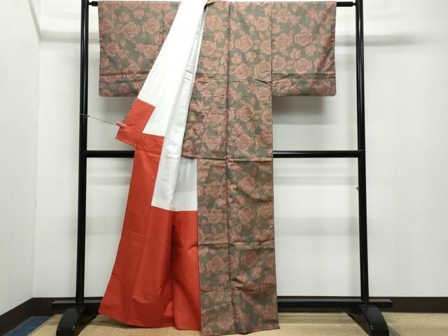 平和屋着物 上質な紬 薔薇 正絹 vf