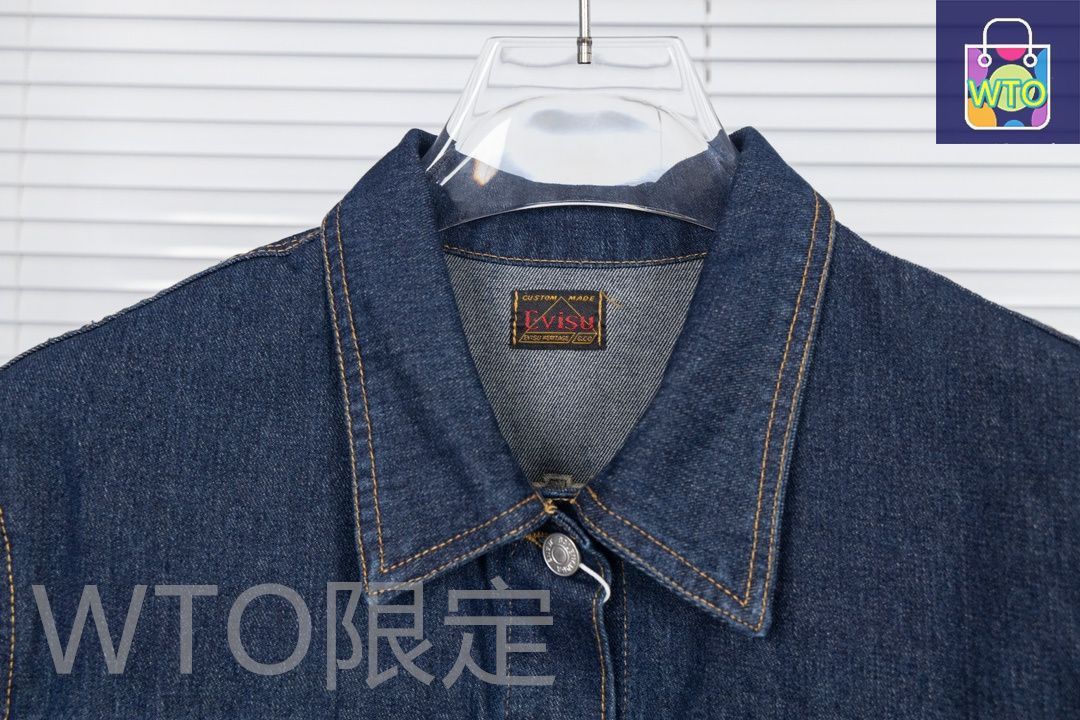 EVISU メンズ デニムジャケット 双狛犬刺繍 ウォッシュ加工 M-2 XL -WTO輸入1