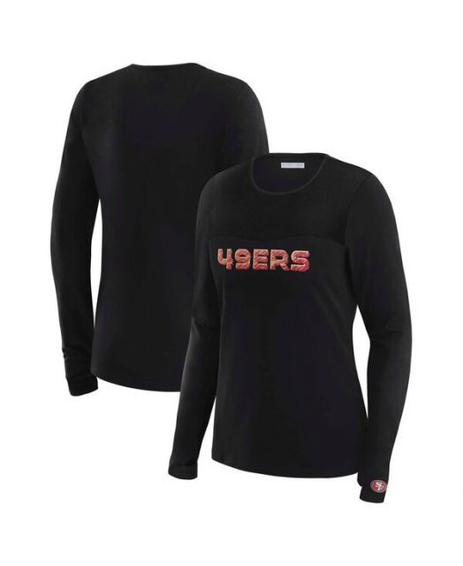 ウェア バイ エリン アンドルーズ レディース Tシャツ トップス Women s x Gracie Hunt Black San Francisco 49 ers Mesh Panel Long Sleeve T-Shirt