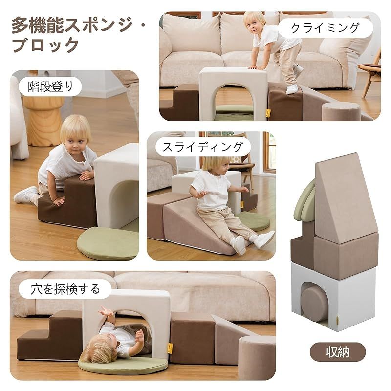 【探求と創造性】このセットには、登ったり、這ったり、滑ったり、組み立てたりするための7つのフォームクライミングブロックが含まれており、子供たちの身体的協調性や運動スキル、想像力を育むさまざまな遊びの活動に役立ちます。