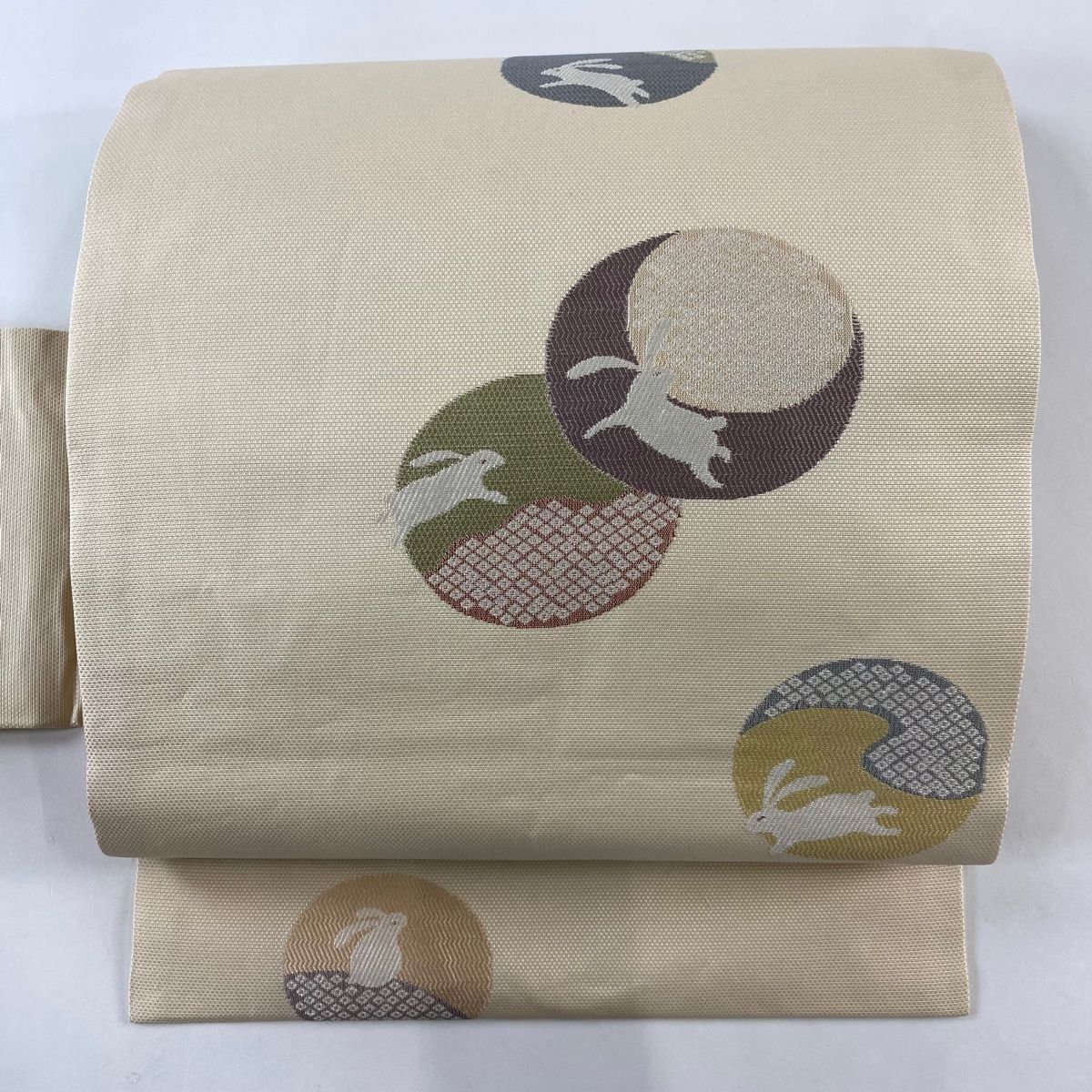 名古屋帯 うさぎ 疋田柄 ベージュ 正絹