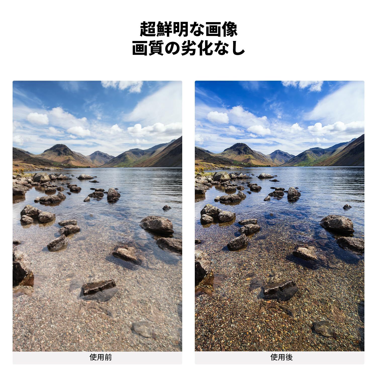 撥水防汚コーティングフィルター表面は18層のナノコーティングが加工され、撥水・撥油を実現し、指紋がつきにくく、汚れも簡単に拭き取れる。川や山や砂漠など過酷な環境でも安心して撮影出来。