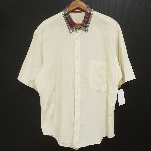 ◎商品名(タイトル):#snc パパス Papas 半袖シャツ LL アイボリー チェック ロゴ 大きいサイズ メンズ [964885]