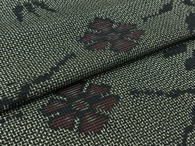 平和屋着物 上質な紬 単衣 草花文 黒地 正絹 jh